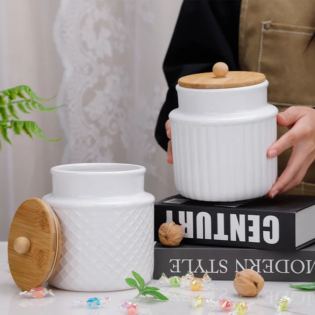 Udeco Custom Classic White Tea Jar Storage Jar With Lid Ceramic Sealing Jar for Home Kitchen
